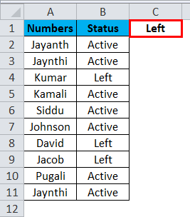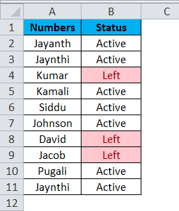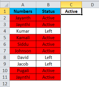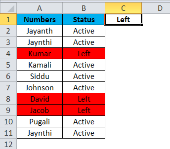 Now try changing the cell value in C1 from Left to Active. It will highlight all the Active row employees.