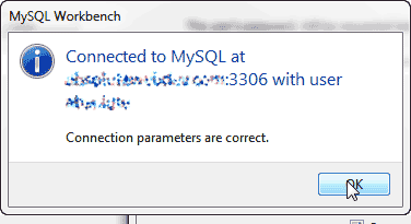 After clicking on ok, it displays a window to show the message connection parameters are correct; then again, click the ok button.