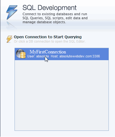 Now it shows you the list of connections available under the SQL development section, where you will find you just created a new connection as well, so click on your newly formed connection.