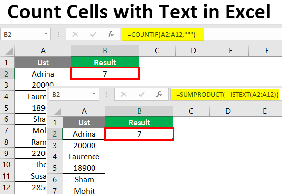 This is a guide to Count Cells with Text in Excel. Here we have discussed How to Count Cells with Text in Excel, a few practical examples, and a downloadable Excel Template. You can also go through our other suggested articles –