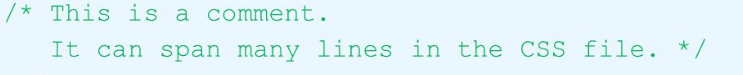 5. Comments: These CSS commands should be used when writing code. They clarify what the code is doing and help you or someone else who is new to the code to work on it accordingly. Browsers ignore comments. A CSS comment starts and ends with /* */.