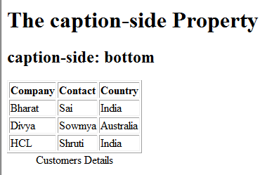 - Caption-side: top: It is the default value. In this, it puts the caption above the table.