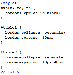 - Border collapse: separate: It is used so that the adjacent cells have their own and independent borders that are not shared.