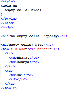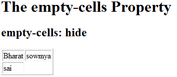 - Empty-cell:show: This property displays the borders on the empty cell.
