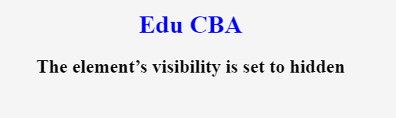 It hides the element from the webpage. Though it hides the element from view, it still occupies space on the webpage, depending on its height and width. Let’s understand this behavior with the below example: