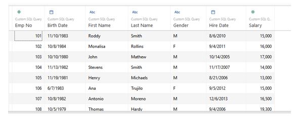 Step 10: The above step navigates us to the “Convert to Custom SQL” section, as shown in the screenshot below. Observe the SQL query. We can see that both tables consider the emp_no field, as highlighted. Also, hire_date and from_date are two same fields, but as they are present in the two tables with two different names, they have been considered separate fields. We will edit this SQL to obtain overcome redundancy.