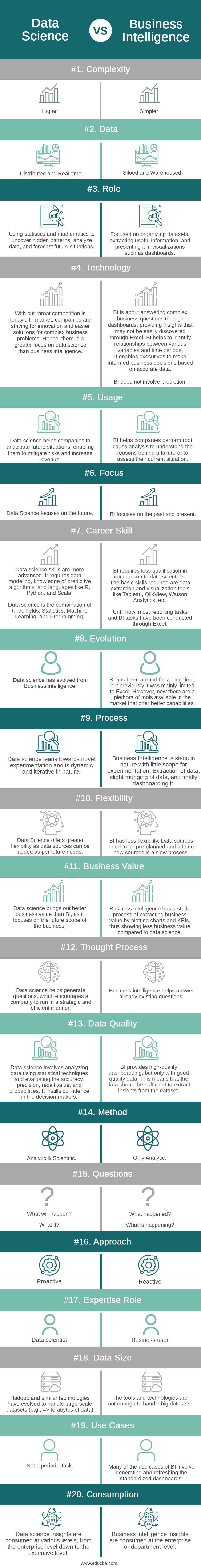 Here are the top 20 comparisons between Data Science vs Business Intelligence: