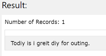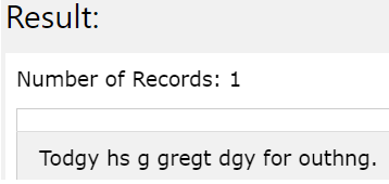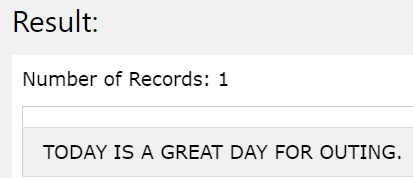 The output of the above query statement is as shown below with all the occurrences of ‘a’ character of the source string get replaced with ‘i’ as shown below and the statement becomes “Today as a great day for outing.”