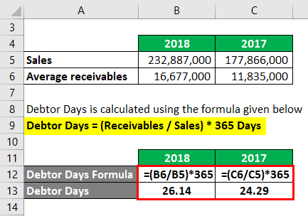 If the business has high debtor days, it implies that the business will have money stuck with the customers and have less money in hand to use. This could result in a decline in the company’s growth because of a lack of available investment resources. Businesses also have some obligations that they need to cater to, and if fewer funds are available, they have no choice but to take a loan to fulfill those obligations.