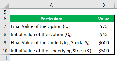 Step 6: Next, calculate the change in the value of the underlying stock by deducting its initial value (step 4) from its final value (step 5).