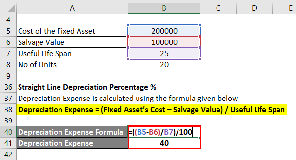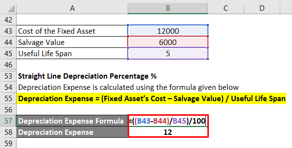 Depreciation Expense = (Fixed Asset’s Cost – Salvage Value)/ Useful Life Span