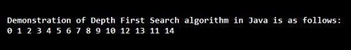 System.out.println("Demonstration of Depth First Search algorithm in Java is as follows:");