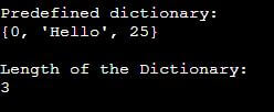 The len() method determines the count of elements in a given dictionary component. So the overall count of the total number of key-value pairs in the corresponding dictionary will be displayed. Moreover, this acts as a wrapper method so that the dictionary item will be wrapped into the length method.