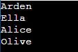 first_dict={1:"Arden",2:"Ella",3:"Alice",4:"Olive"}