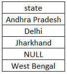 First of all, we will update a field in the state column as NULL and then use a distinct keyword to obtain the result set.
