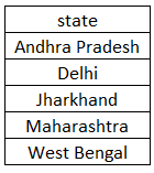 We will get 5 values on executing the query as we have only five distinct states as Jharkhand is repeated twice. Since we have used ORDER BY so the result set will be sorted in ascending order. Below is the result set we should get on executing the query.