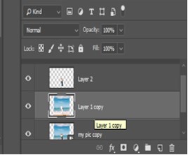 Step 10: Place the separator image of the lady (named as Layer 2 ) above to this background layer and then select this separated background layer (Layer 1 copy) by click on it.