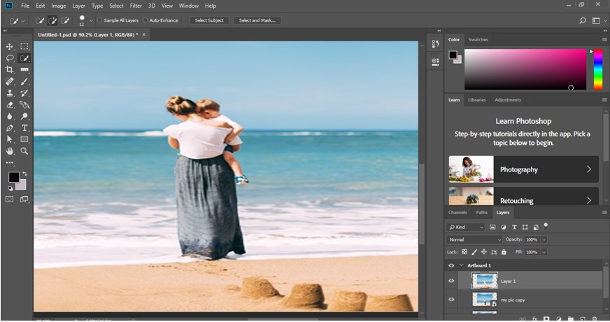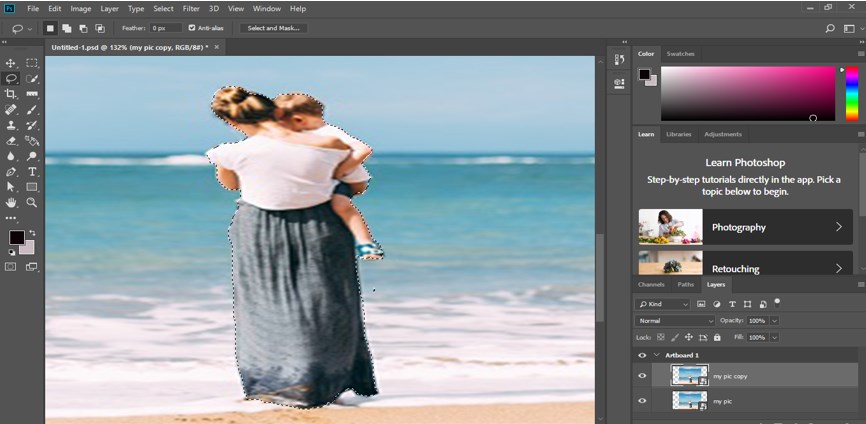 Step 6: Now select Copy of My Pic image layer in layer panel by click on it, then make a selection around the lady of the image with the help of this Quick selection tool.