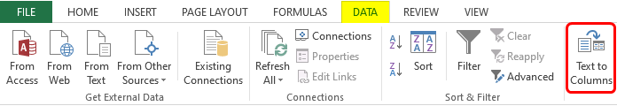 Step 3: As soon as you click on the Data tab, you’ll see different options associated with the data using which we can manipulate the data in Excel. However, you need to navigate to the Data Tools group, where Text to Column is an option.