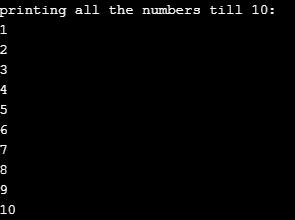 Printing all the Numbers from 10 till 1 in Reverse order.