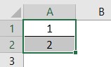 So we have entered two consecutive numbers: 1 and 2, in cells: A1 and A2.