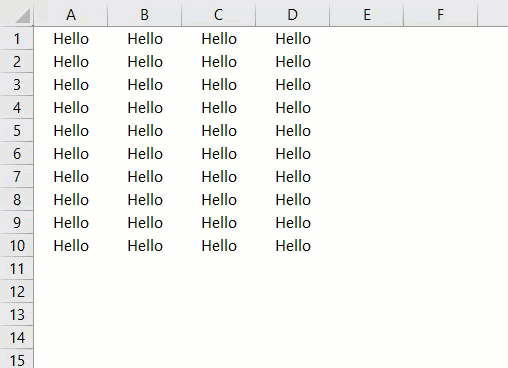 Now for A1 through D10, let’s see how these dragged cells (i.e., A2:D10) look when selecting the option “Fill Without Formatting”.
