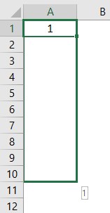 We can even insert or fill serial numbers without guiding Excel with any predefined pattern using the “Fill Handle” option. Let’s say we require serial numbers from 1 to 10. Let us see how this works.