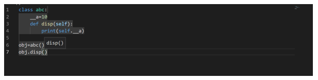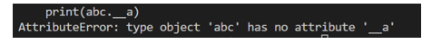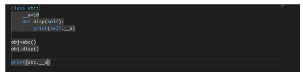 To fetch a confirmation on the scope of the non-public instance variable, we add the print(abc.__a) to the code: