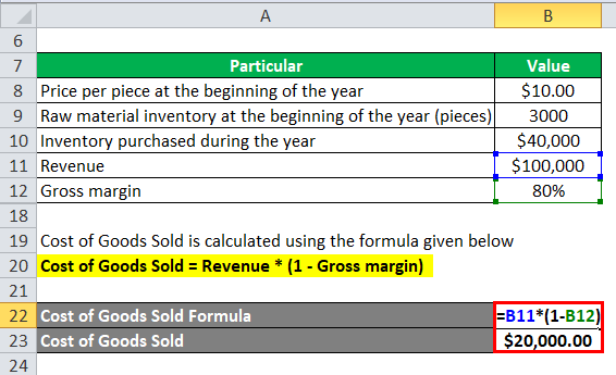 Cost of Goods Sold = Revenue * (1 – Gross margin)