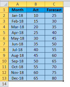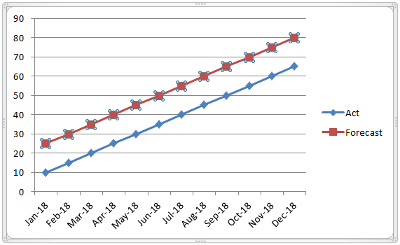In this example, we will learn how to add error bars to the chart. Let’s consider the example below, which shows the sales actual figure and forecasting figure.