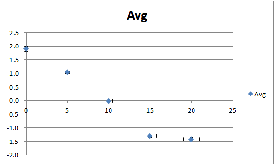 As we can notice, the error bars show a standard deviation of 0.5, 0.1, 0.2, 0.4 and 1.0