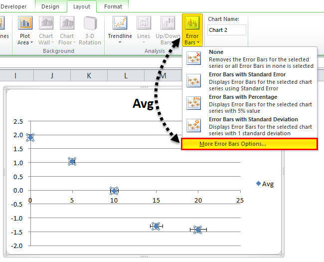 - Click on the Error Bar to see the More Error Bar Option, as shown below.