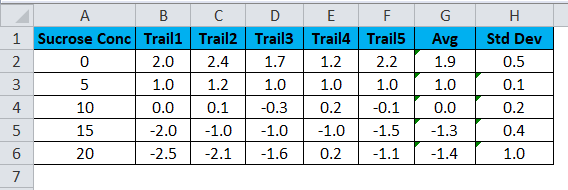 - Now select the Sucrose Concentration Column and AVG column by holding the CTRL-key.