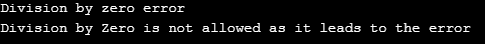 The statement itself defines the error as this is displayed or occurred when the divisor is zero before a division command so this leads to dividing by zero error.