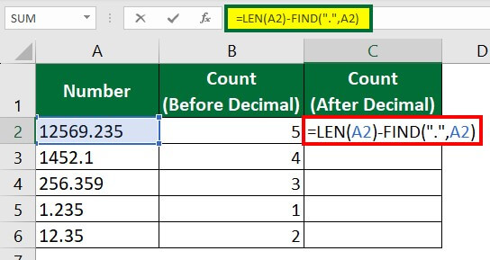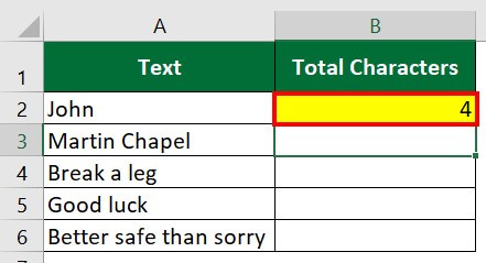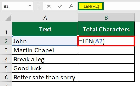 - The “LEN(A2)” function will give the total number of characters in Cell A2, i.e., 7