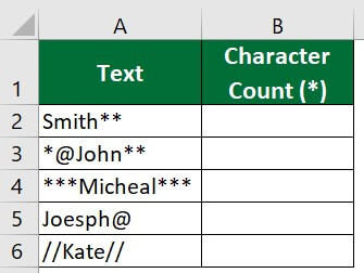 For example, you have the following text data with special characters in each cell. You want to know the total number of asterisks (*) in each cell.