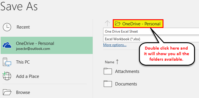 - Click on Save As and then click OneDrive – Personal, as shown in the screenshot below.