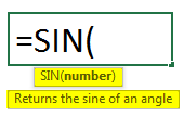 The SIN function has only one argument, which is a number. A number is required to calculate the SIN of it. Hence it is vital to convert degrees to a number in radians before finding the Sine of it.