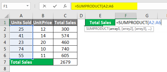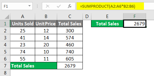If we want to do unit price * unit sold calculation, we will do an individual calculation and finally add the total to get the total sales. For example, look at the below example.