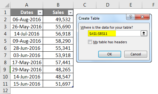 Step 1: Convert this range to the table by pressing Ctrl + T.