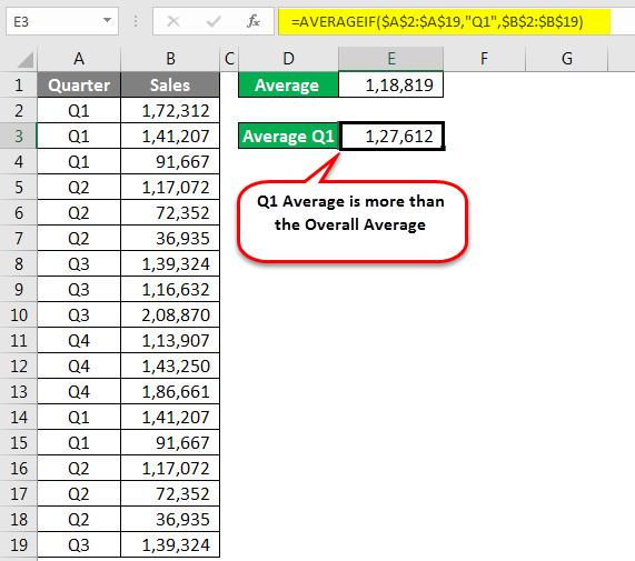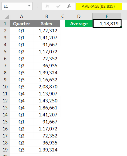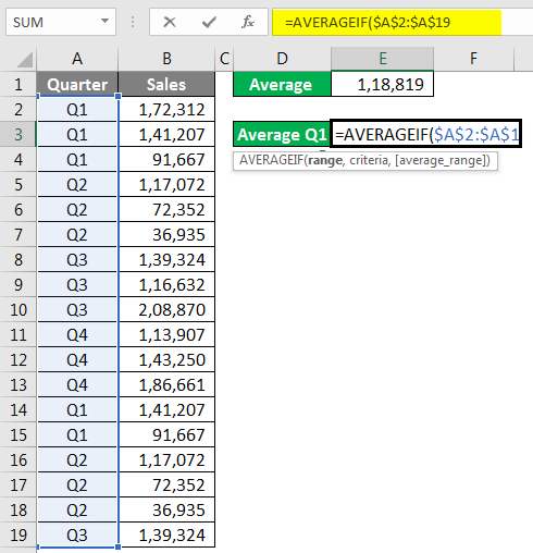 The average Range is nothing but the sales column to select the Sales column and close the bracket. We will get Q1 Average Only.
