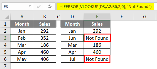 If VLOOKUP returns an error values IFERROR convert this to Not Found text value.