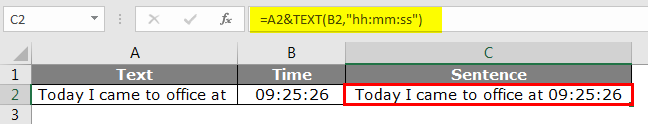 We need to pass the time cell with the TEXT function and convert it to “hh:mm:ss” format in Excel Spreadsheet.