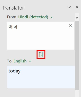Step 2: Type the word you want to convert and select the”Fro” and“T” languages from the options. For example, type Today and select English in From and Hindi in the To section. The result will display automatically.