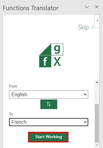 For example, if you know French and want to translate Excel formulas into English. You can select English in the From and French in the To, as shown below.