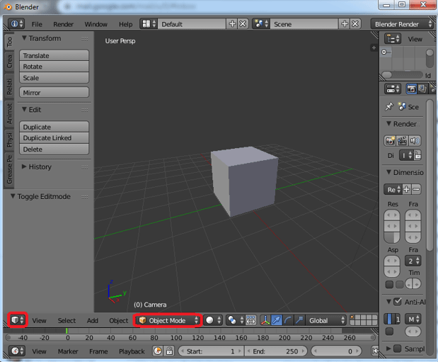 Open Blender and set the view to 3D, and change the environment from object to edit mode to perform edits. On the same bar, we also have radio buttons for Vertices, Edge, and Face while working; we can switch between these modes based on creation requirements.
