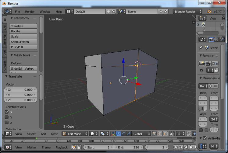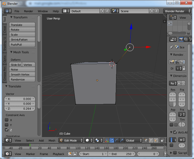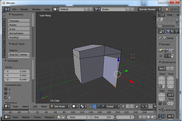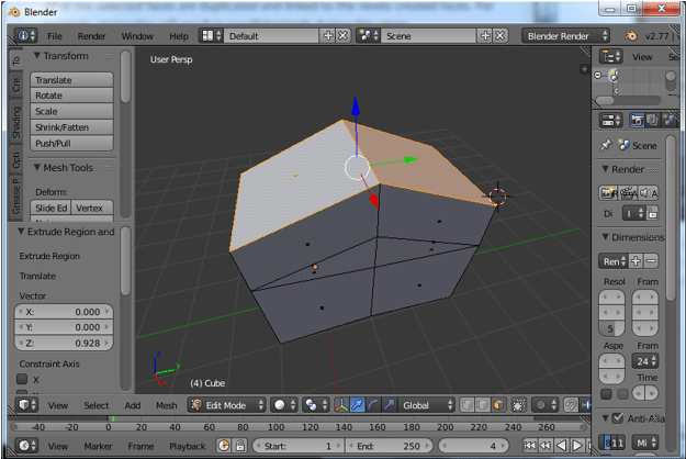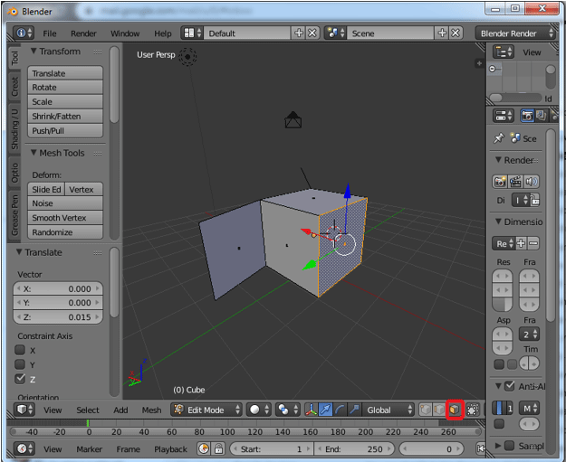 Set the model to edit and select the first option from the radio buttons; by this, we can start editing vertices within the model. Select the vertices to click hotkey “E” for extruding the vertices and use the cursor arrows to set the location of the new vertices.