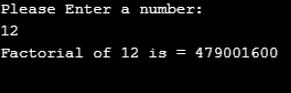 A major difference between the earlier and above example is the user input; Rest is the same. Code will ask for a number to be calculated, then if the number entered by the user is Negative that is in “-”, minus, it will prompt “Please enter a number greater than 0:”, which is obvious as Factorial cannot be calculated for Negative number. Now, it will accept a positive number and proceed with Calculating Factorial and then print the output as shown in the below image.