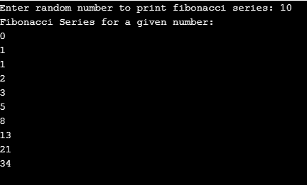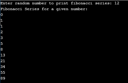 cout << "Fibonacci Series for a given number: \n" << endl;