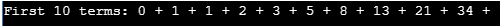 - Implying the program logic drafted above, but at this instance, the Fibonacci inputs are regulated only through necessary conditional statements.